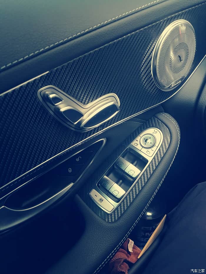 原车是这样的门板,而我进行了适当改装,搜索“适用奔驰GLC改装碳纤维贴纸新C级门板防踢车贴保护膜犀牛皮防划痕 。