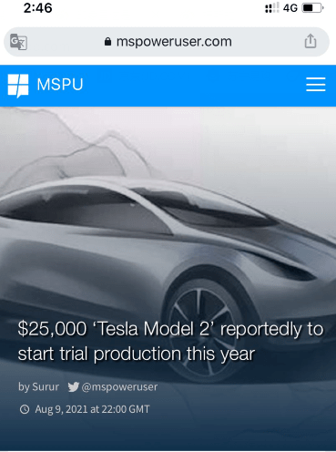 实际上,特斯拉将推出定位更低的车型已经不是什么秘密。在2018年的特斯拉电池日上,特斯拉CEO马斯克表示,计划在三年时间内推出一款售价2.5万美元的电动汽车,并通过垂直整合功能更强大的电池的生产,该公司可以扩大电动汽车的范围并降低成本。由此计算的话,2018年三年时间后将推出一款售价2.5万美元的电动汽车,时间、售价与媒体报道的相对契合。