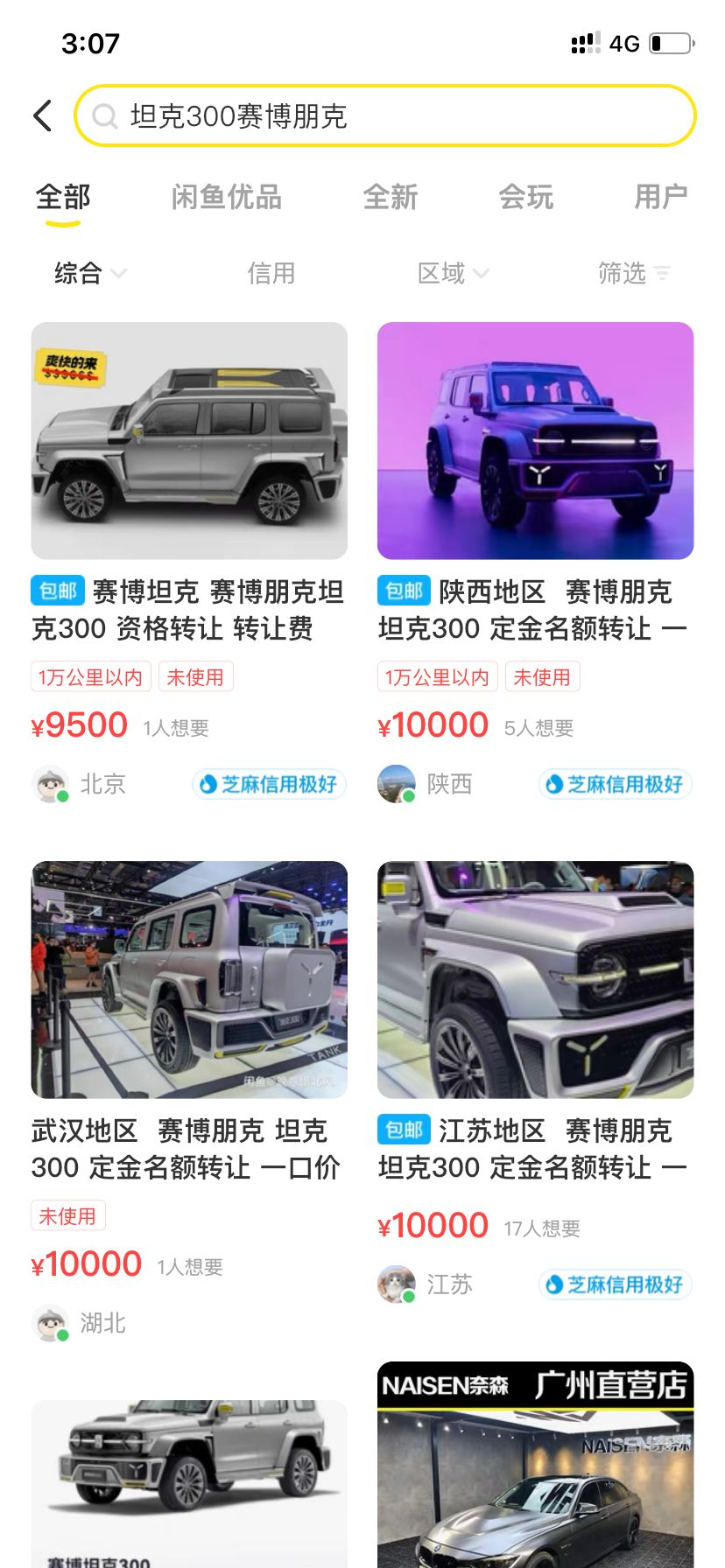 近日,在二手交易平台上,出现了大量转订坦克300赛博朋克版本的交易帖。值得注意的是,此次坦克300赛博朋克的转订是需要加价。从平台上转让的订单来看,普遍的价格在1万块左右,不过这只是纯转让费,其不包含车主预定的5000元订金。换句话说,就是这些抢购到坦克300赛博朋克版本的车主,加钱1万元转让坦克300赛博朋克版。