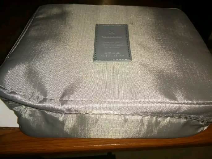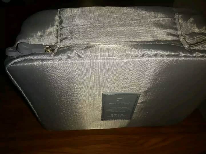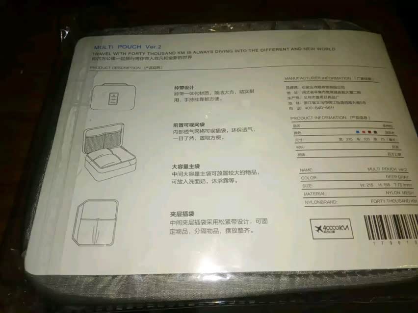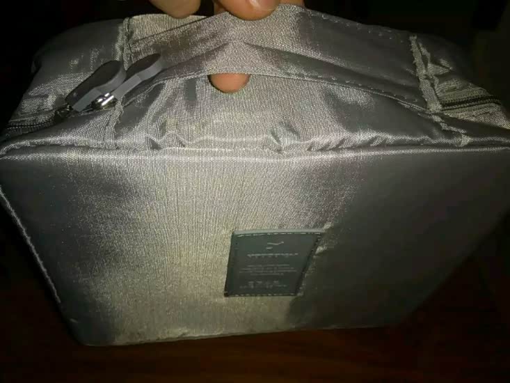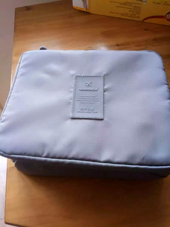 这洗漱包外观面人性化还有拎手银灰色正配我宝驴儿嘿嘿面料像水洗布反正我也懂看就行