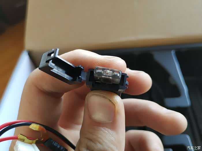 这是供电的保险,这个必须点赞,因为很少有倒车雷达安装保险,这个可以很大程度的保护主机的安全,