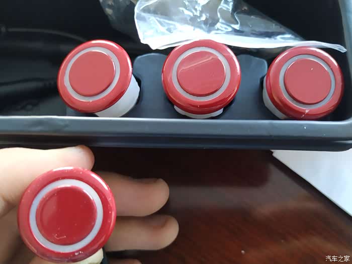 这就是四个雷达,一开始还担心这个颜色会比较有色差,看到以后完全没有,因为我的这个是波尔多红,比较不常见,这个也应该是铁将军家才可以做到吧,颜色的差别基本没有。