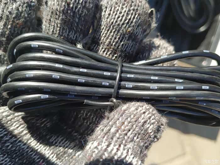 这是雷达的线,上面对应的主机上面有A B C D 四根,所以位置不能错,这个线上标的,这个就避免安装过程顺序混乱,这也是做工精细的