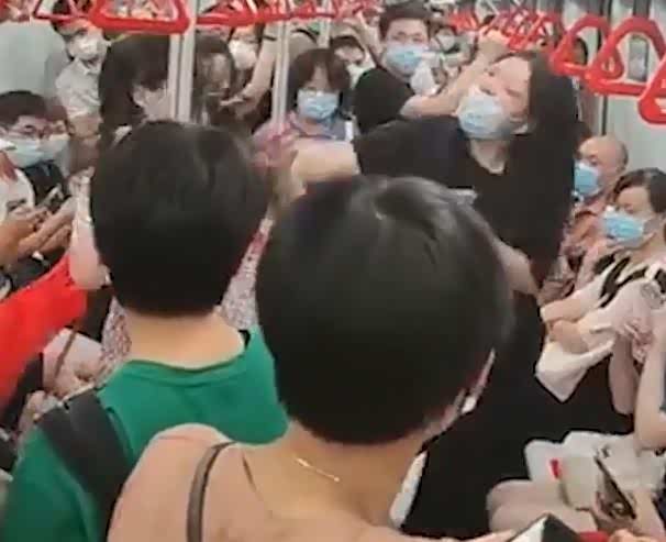 黑T恤衫的女子与另一名穿着连衣裙女子发生冲突,黑衣女子上前掌掴连衣裙女子,打掉了对方的眼镜,后二人互相掌掴。其间,车厢内其他乘客用上海方言说道:“你们这样不行,好了好了让一步,不要打了”。