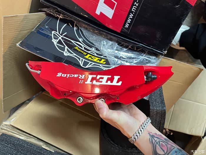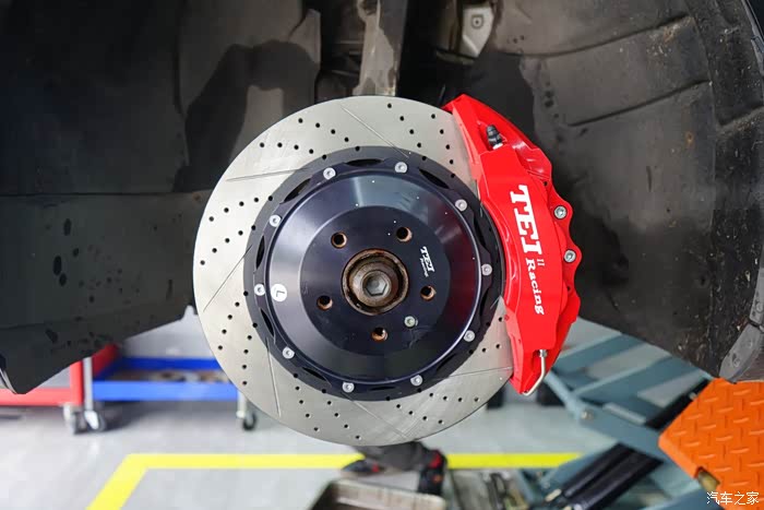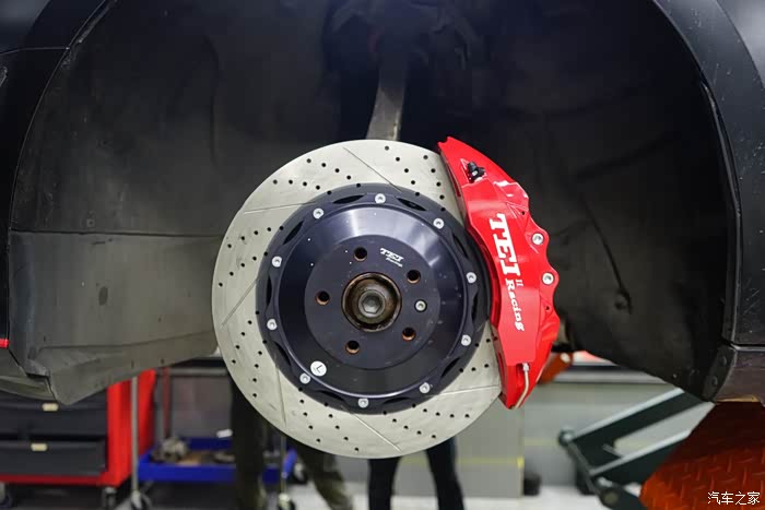 这次升级的刹车TEI国锻.p60es前六活塞两片锻造,性能街道没问题.刹车盘前后380大盘直径