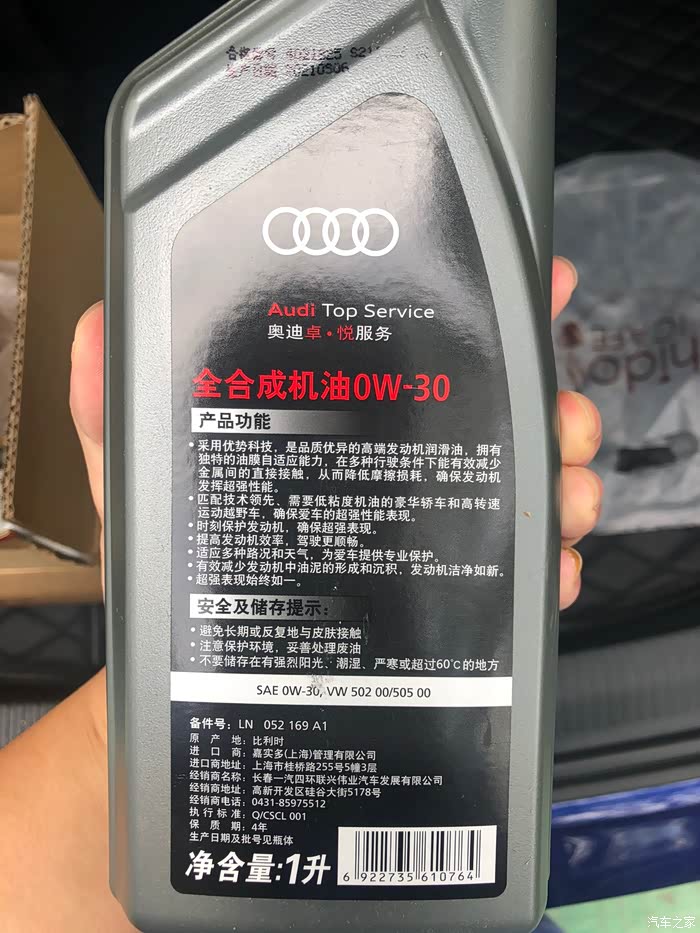 上次保养过后的液位目测损耗0.5升首先机油自己在某东上关注了专享0W-30前段时间有打折赶紧下了单正好保养时间也接近了买了以后也担心会有假也是想办法验证了一下