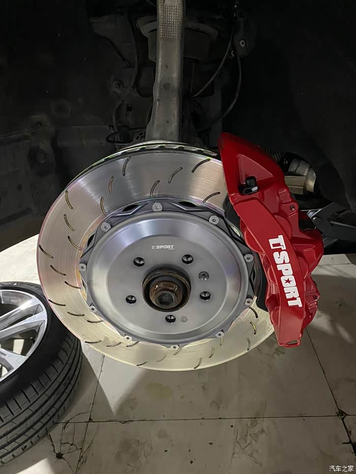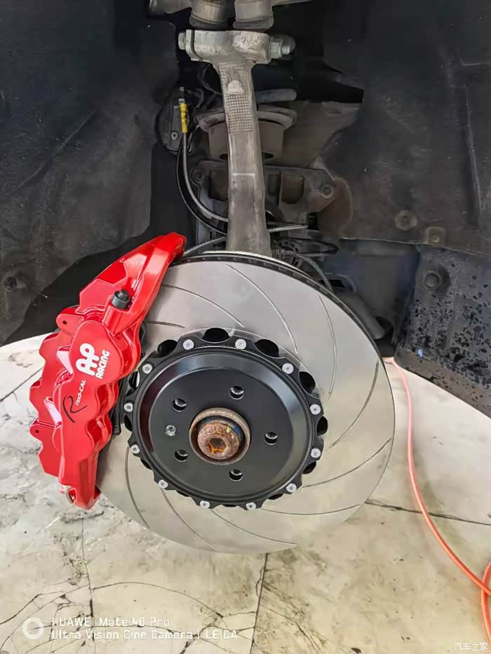 有一天车停在某停车场轮毂被蹭了,拆下来喷漆发现油管磨破皮了,这事我哪受的了,喷完漆的第二天我就把卡钳拆了,换上了自己在某鱼买的大二卡钳,油管是按照原车的位置有,这种比较可靠,用了几天发现没有红色卡钳的点缀,车车不那么可爱了,又被AP8520吸引了,迷了。买,1.3W真有点心疼,这次自己改,找了个朋友的汽修厂,开始搞
