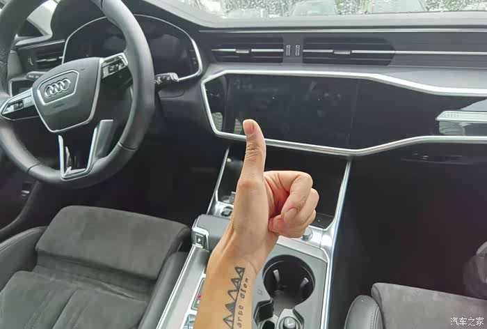 内饰就是奥迪的样子,翻毛皮质感很好,可以看到前后排空间都很不错,尤其是那个飞机拉杆的档杆手感很好,莫名和飞机呼应上了哈哈哈!