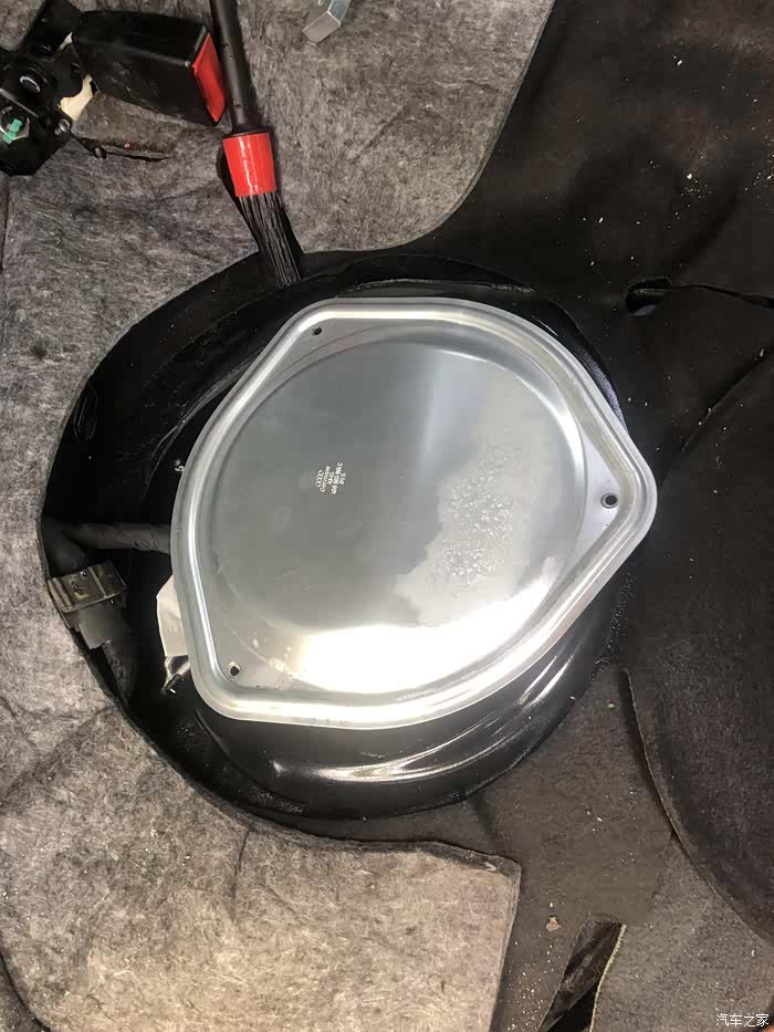 拆后排座椅的过程就不详细说了,取掉安全座椅共计八个卡扣。座椅一抬,搞定。打开图中的盖子。