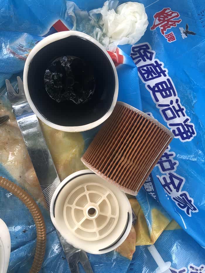 12万公里拆下的滤芯,拆开一看,顿时后悔了,干干净净,***的说好的脏东西呢。各位看官,换不换自己决定。我是砸开了没办法了,只能把新的换上去。