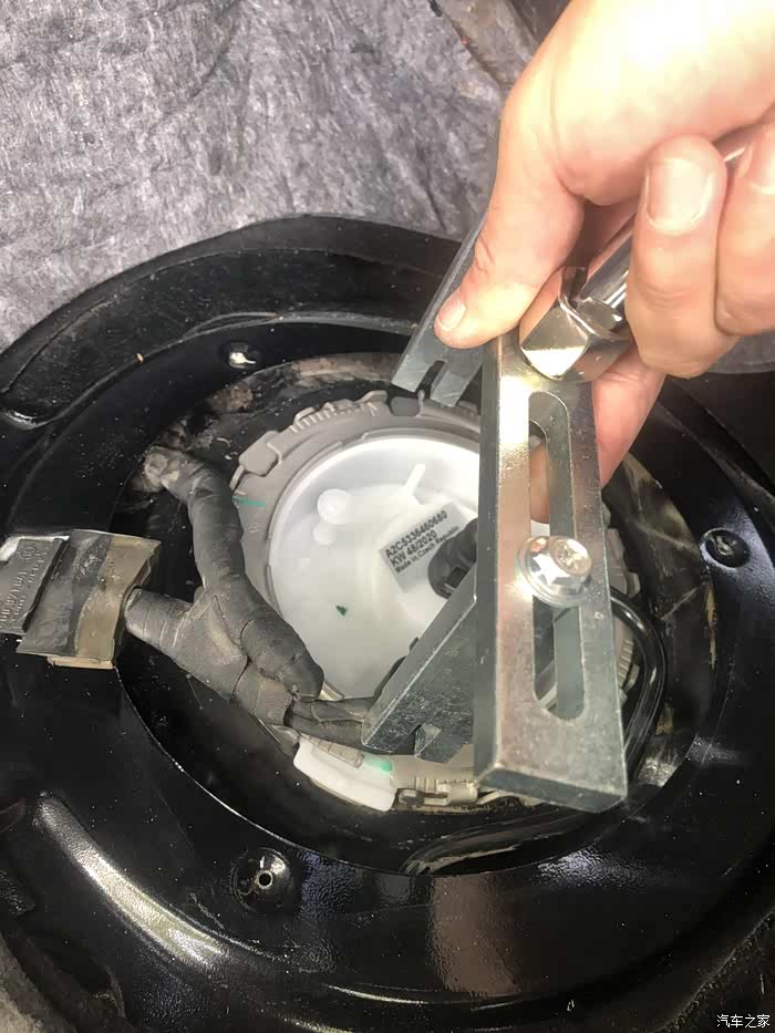 最后是用专用工具打开卡箍,没有专用工具可用榔头加一字螺丝刀搞定,我是工具流,基本工具都是专用的,买也不贵。