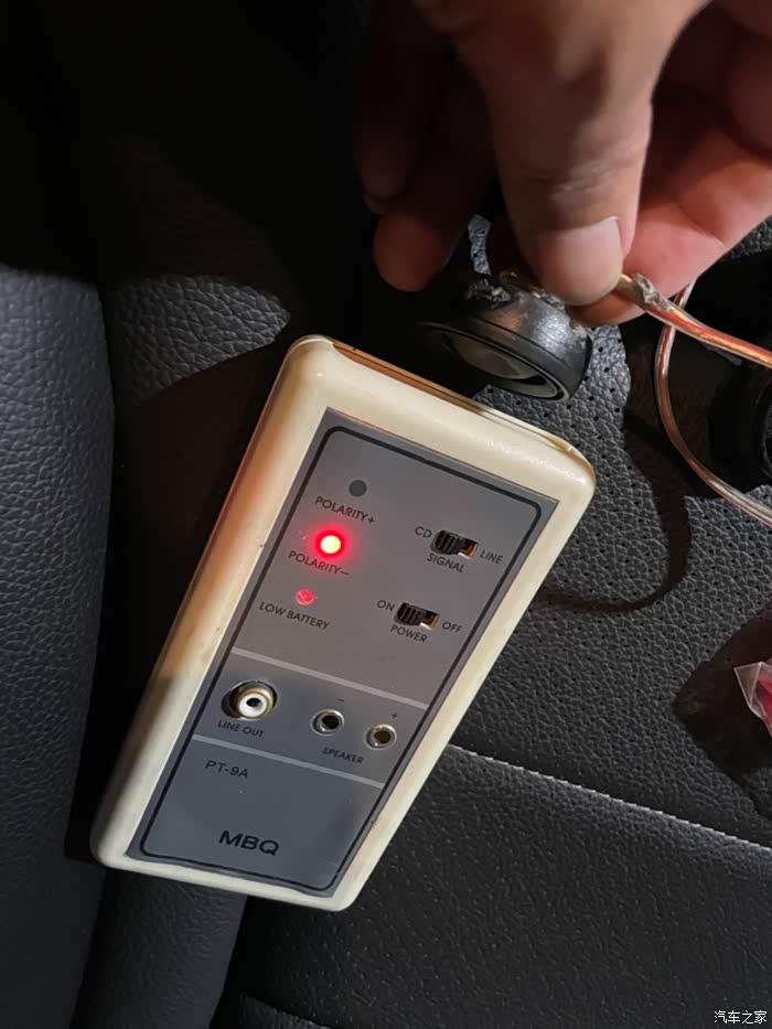 测试相位。正负极线路.三绿一红就对的,个别车型全车喇叭反的,所以先去测试后门中音喇叭决定