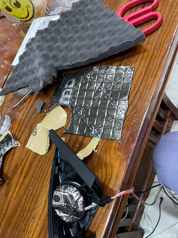隔音棉+止震贴。平时做音响都会用到的材料,去朋友店拿的