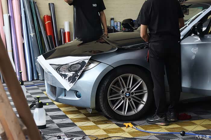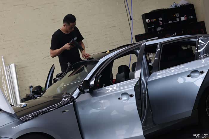 这个是贴好后和普通的亮黑膜做了一个直接的对比,可以直接的看出来质感的对比