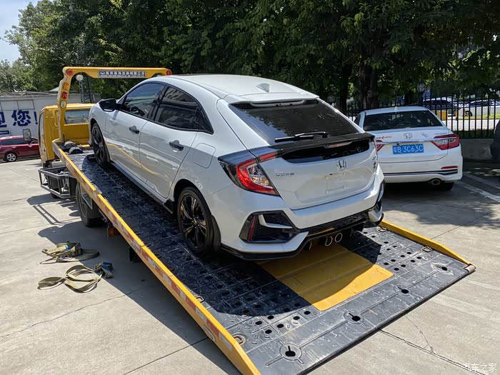 因为三厢版以前有看过实车,也体验过,所以就省去可到店的环节,当车卸下来的时候还是难掩心中的激动。因为我比较着急,临牌都没来的及打,给了钱就把车拖走了,拿回来慢慢看,铁牌到了再上路