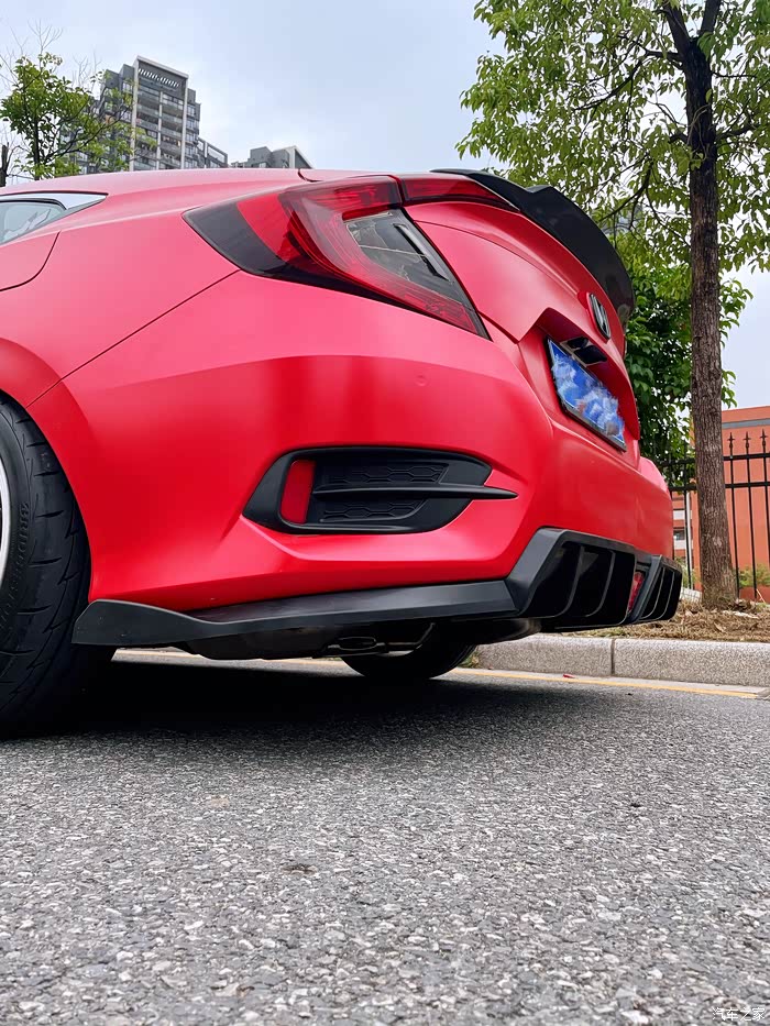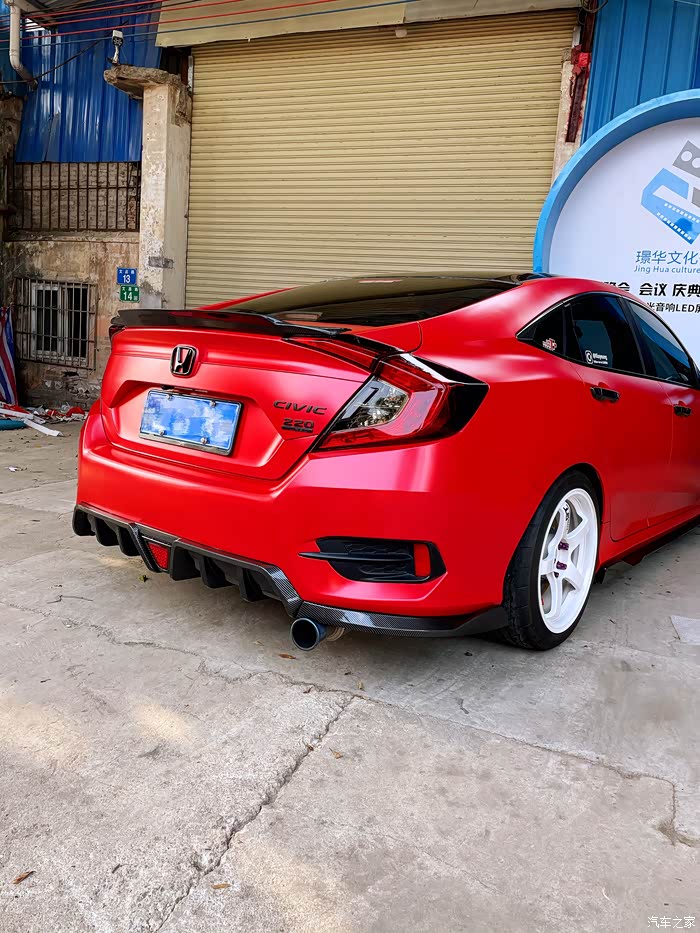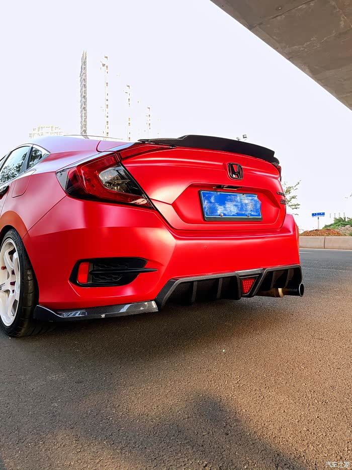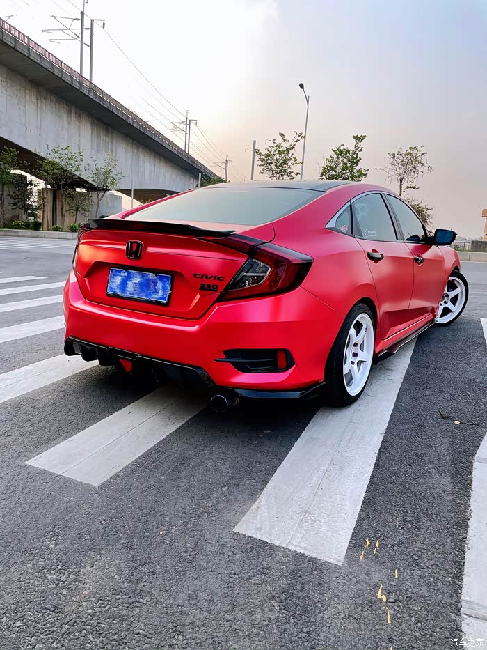 煽情的话就这些吧,哈哈,先讲讲3年的用车感受。当初选车的时候除了看上思域的外观,动力还有可玩性以外,更多的是个人的情怀。自己人生第一台车是一台9代的思域2.0,虽然没怎么改动,但也是被本田爆tec的魅力吸引,10代出来的时候就忍不住剁手了。试驾了一次以后就下订了16款的手动豪华版,无奈等了半年没车,只能加点钱提了一台尊贵的现车。CVT最大的优势就是顺滑,省油,而且加速很快(实测二阶手动和原厂CVT红绿灯弹射,100公里以下跟不上),原厂177匹的马力在日常用车方面也真的足够,原厂状态下综合油耗最好做到6.5,也是个不错的成绩。网上很多人都在说日本车皮薄,不耐撞,但是见过网上以及几个车友的大事故之后,感觉日本车该硬的地方还是做足的,两百公里侧面滑撞大货车,车架虽然有点变形了,但是车里两个人一点事都没有,质量还是过关的。