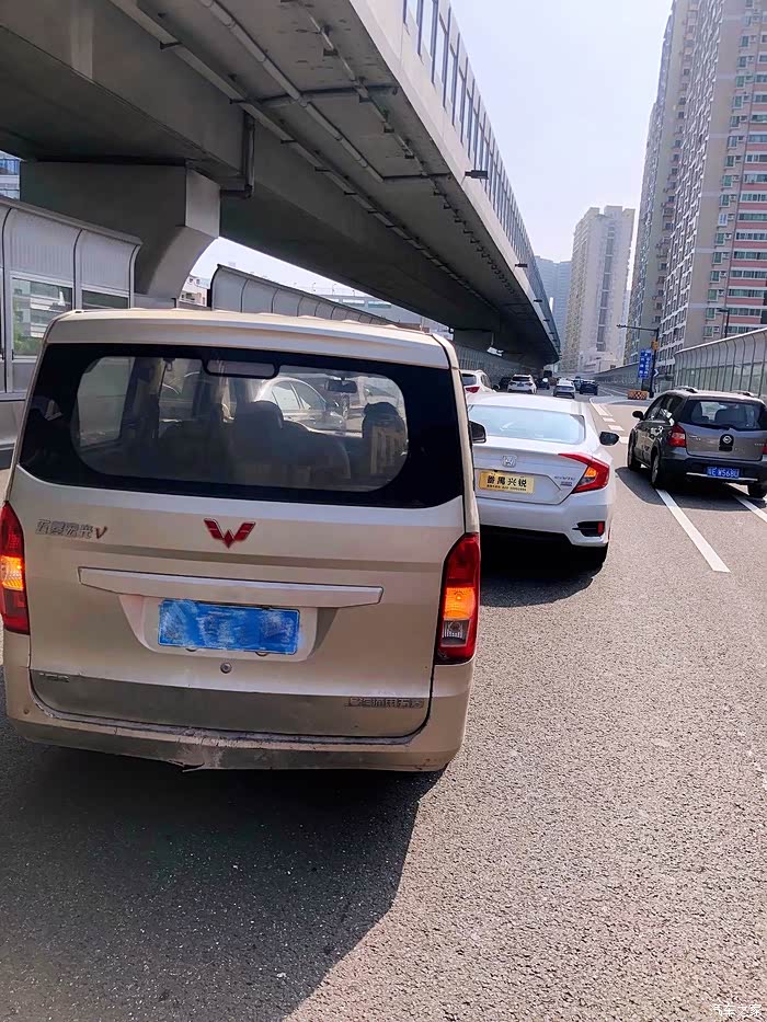 前面有个丰田霸道怼进来,一个刹车后面就撞上来了,如果再晚一点,可能就变三明治了