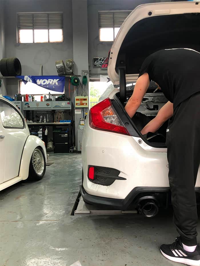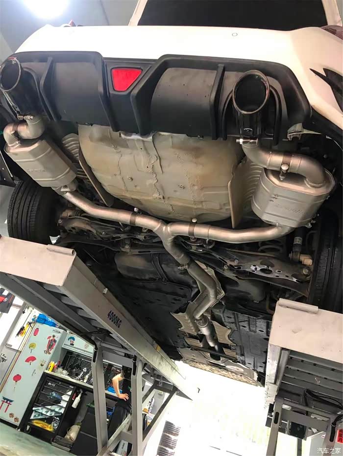 整个改装过程的时间比我想象的要短一些,主要是师傅手法干净利落,不知道在他们手里已经改装多少辆车了,先是拆掉原车的排气,然后再加装Carmyth品牌的套件,最后就是调试了