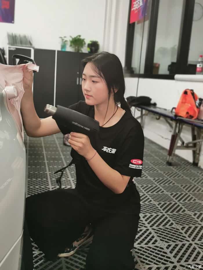 爱车旧照接下来就是撕膜~~闺蜜来之前选中的白金梦幻Tiffany蓝,现场也看看颜色效果,技师小妹妹看起来年纪很小,询问之后才知道,只有18岁,老阿姨表示很羡慕~~来张小妹妹的工作图~