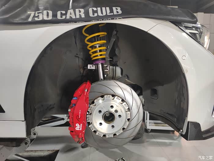 前铲如图,视觉效果还是不错的。但是倒霉的公司地库原厂避震高度都蹭前铲,无语了,碳件是肯定不会上了。因为刚从架子上下来,此时是SUV状态。