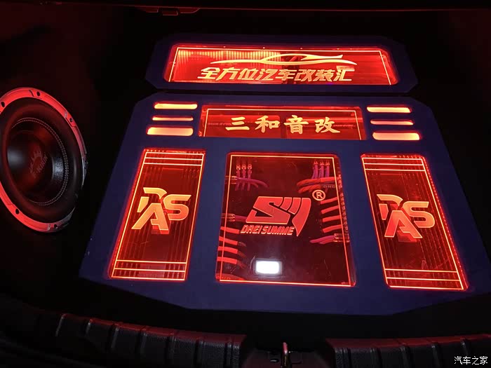 音响方面保留哈曼卡顿喇叭,把L7功放换成了2台4路功放+1台2路功放+1台低音功放+1台低音炮+后备箱造型