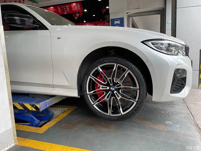 这三样东西改下来,觉得,他们就是应该一起改。刹车最开始是铁了心要买原厂MP套件,但是买不到,在寻找过程中,被商家安利了540i的卡钳,觉得差不多,就先换上看看,最后选择了前540i的卡钳374的光盘;后轮不动,原车卡钳烤漆的方案。轮毂的话一开始也是啥也不知道,但是看到京东上有BBS的旗舰店,可是不知道为什么就是不喜欢它的款式,然后在抖音上看到宏鑫的国锻,了解之后,关于国锻靠谱,和不靠谱的言论都有,本着试一试的原则,就找到宏鑫官网,按照上面的联系方式购买了一套,直接打款到对公账户那种,应该不会买到假货。轮胎的话就选了米其林的ps4s,前轮8J 、ET22、225/40R19 ;后轮9J、ET35、255/35R19。没有追求齐边效果,觉得齐边会甩泥巴到车侧面(因为在工地工作,感觉周遭都是泥巴)。