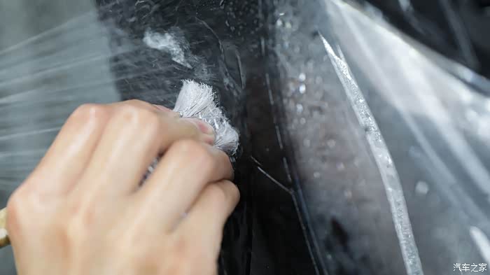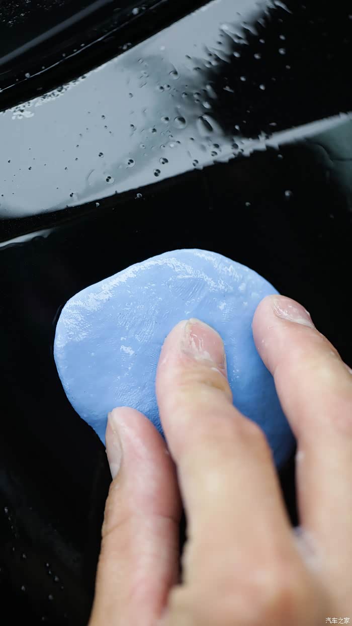 细腻的工前清洁是重中之重。不仅要把表面的污渍清除干净,还要用软毛刷清洁缝隙,并把肉眼难以识别的水渍及角质等,用洗车泥进一步清洁。