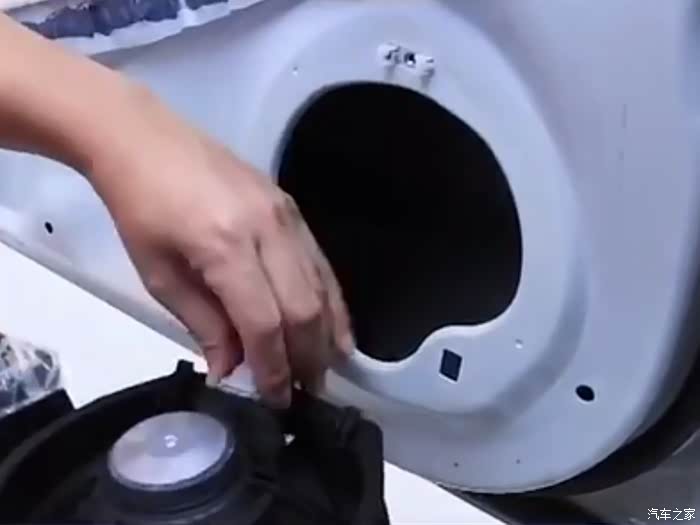 首先从车门车喇叭下端那个角开始拆,将撬棒插进去,轻轻一卡就可以打开,然后沿着车门饰板下边一点一点的拉开门饰板,整个门板就拆掉了。