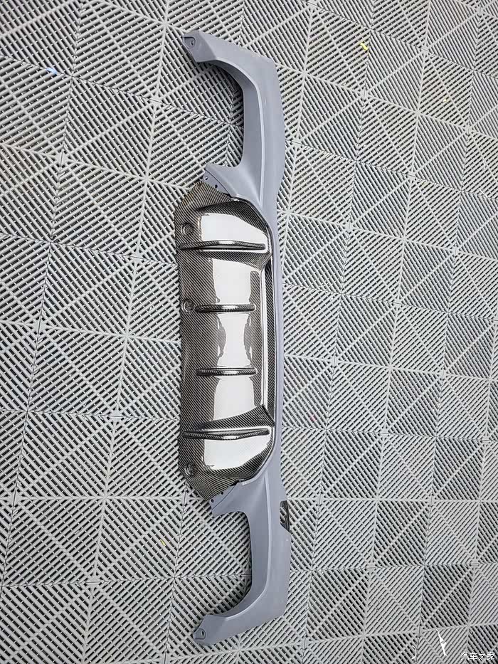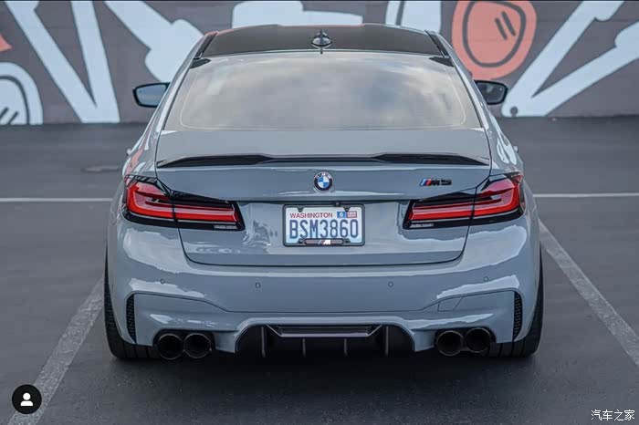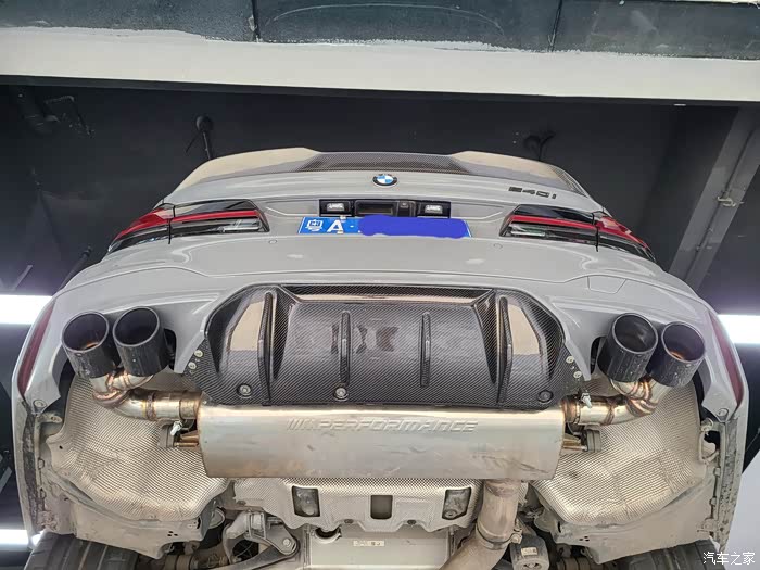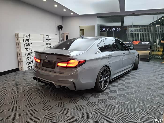 安装M5款后唇搭配碳纤后扰流,效果比祖国版成品的M5竞技款后唇更和谐。