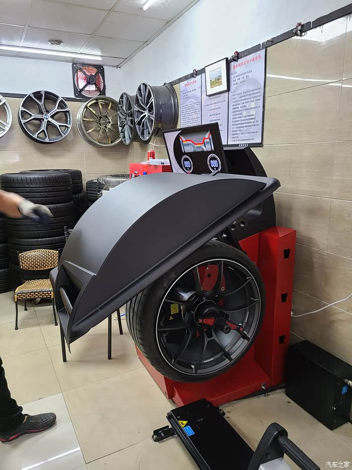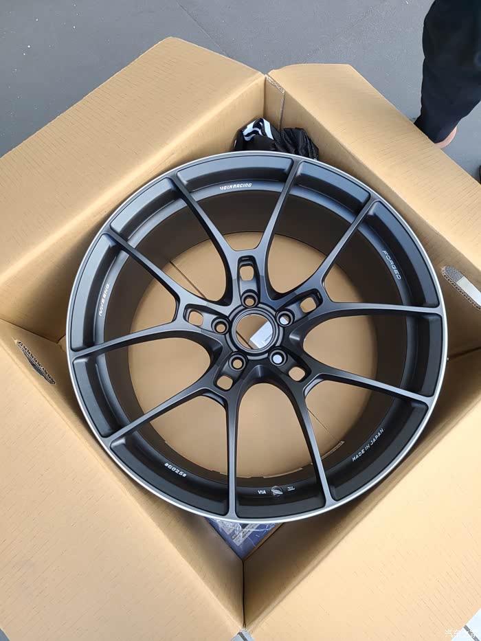 外观改完之后,总觉得轮毂颜色不搭,又开始研究起来,之前车上的是国锻枪灰色HRE_P101,这次想来想去还是决定上套正品,在BBS和RAYS之间做选择,最终选了高性价比颜值款RAYS_G025哑黑色,多方打探到深圳某老牌轮毂店还有最后一套现货,急性子驱车150公里前往安装,磨砂质感的喷漆效果很喜欢。