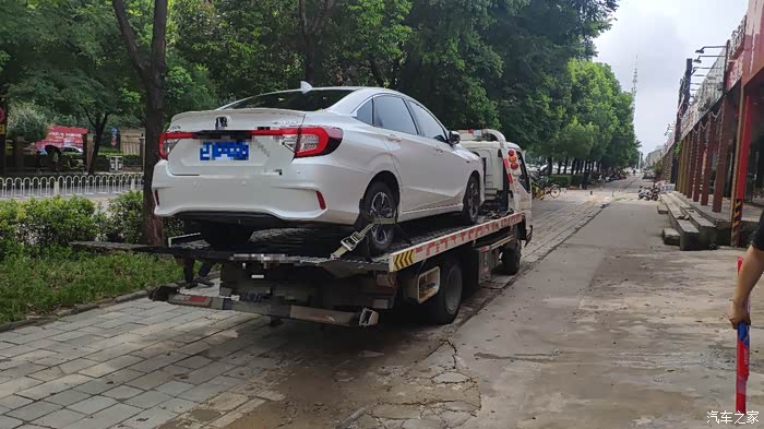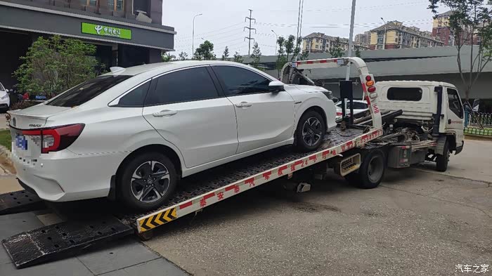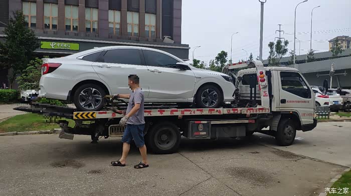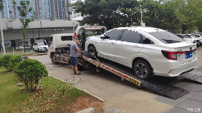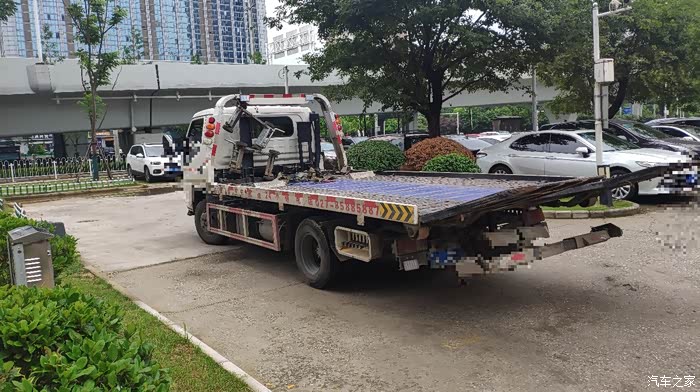 然后拖车师傅在把车子绑好,托盘复位,重点提醒一下,停完车一定不要坐在自己车里,以免发生危险,还有就是一定记得挂P档,拉手刹。