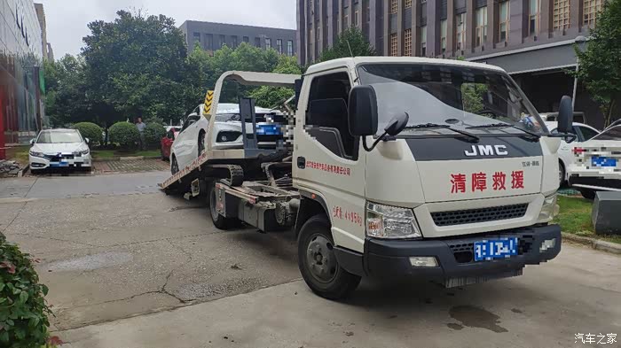 首先救援车把后边的托盘放下来,需要我们自己将车子开上去