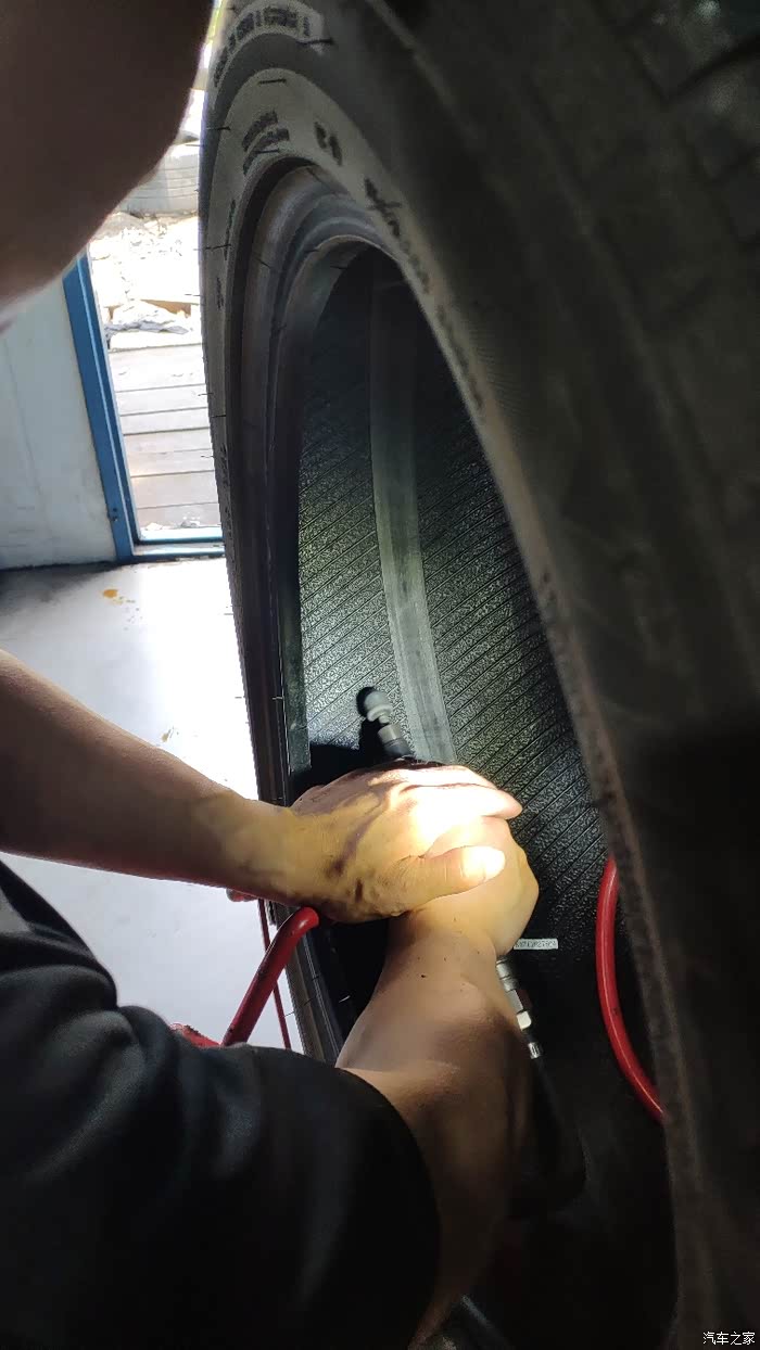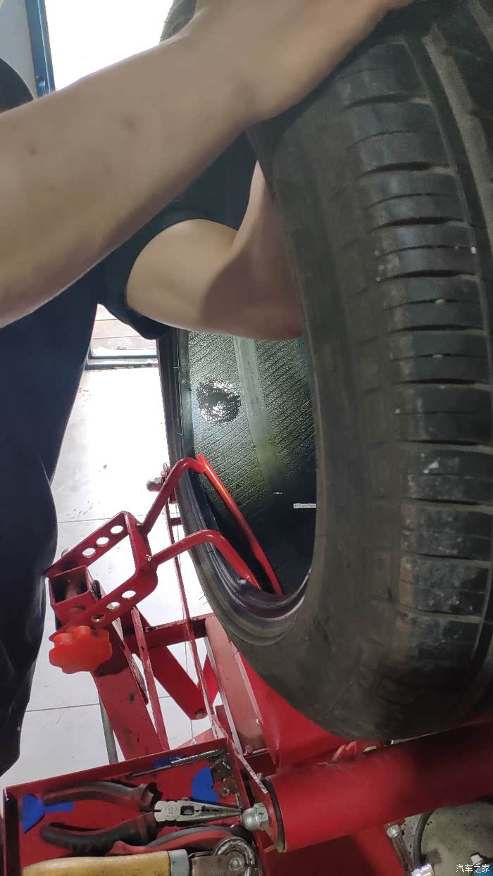 送女朋友上班一路上就听见轮胎有一种哒哒哒哒的声音,就是轮子每转一圈那个位置都会与地面摩擦一次产生的声音,本以为是卡了一个石子,就没有管他,还再继续行驶。一直看到了仪表的胎压报警