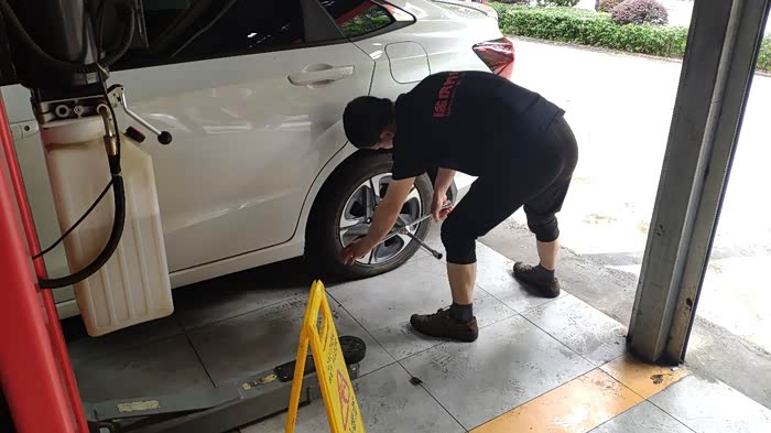 2.由于是贯穿轮胎的,修理工就会咨询我们是贴片还是蘑菇钉,看这个钉子不是很大,我就选择了贴片。