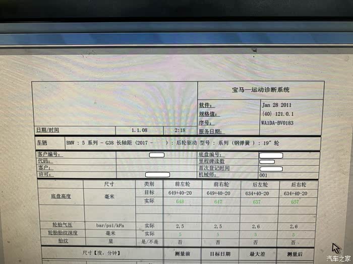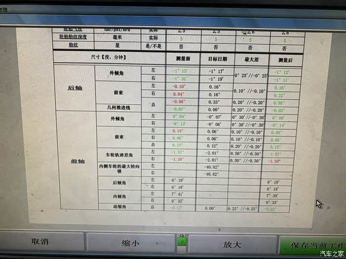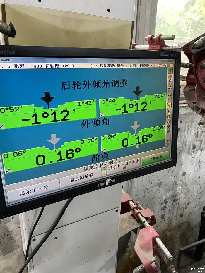 调整后的数据。后轮的数据,堪称完美。前轮数据忘记拍了。宝马车先调后轮数据再调前轮数据。