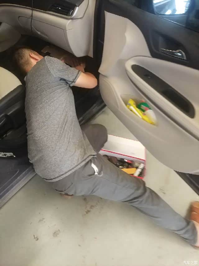 最近电话咨询了下4S店,可以加装一个倒车影像,也不是很贵,就开车去店里装了一个倒车影像。先是装导航模块,需要先把副驾驶手套箱下方和扶手箱右侧拆下来,拆的时候看着很简单就掰下来了,就是师傅需要趴在那工作,看着姿势有点挺辛苦的啊。