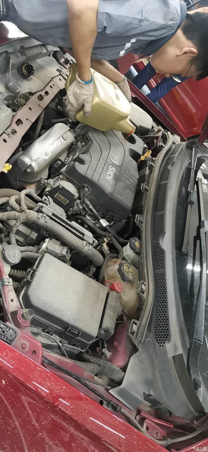 师傅这精准的技术厉害了,直接倒进去就行了,而且为了4L机油刚刚好。