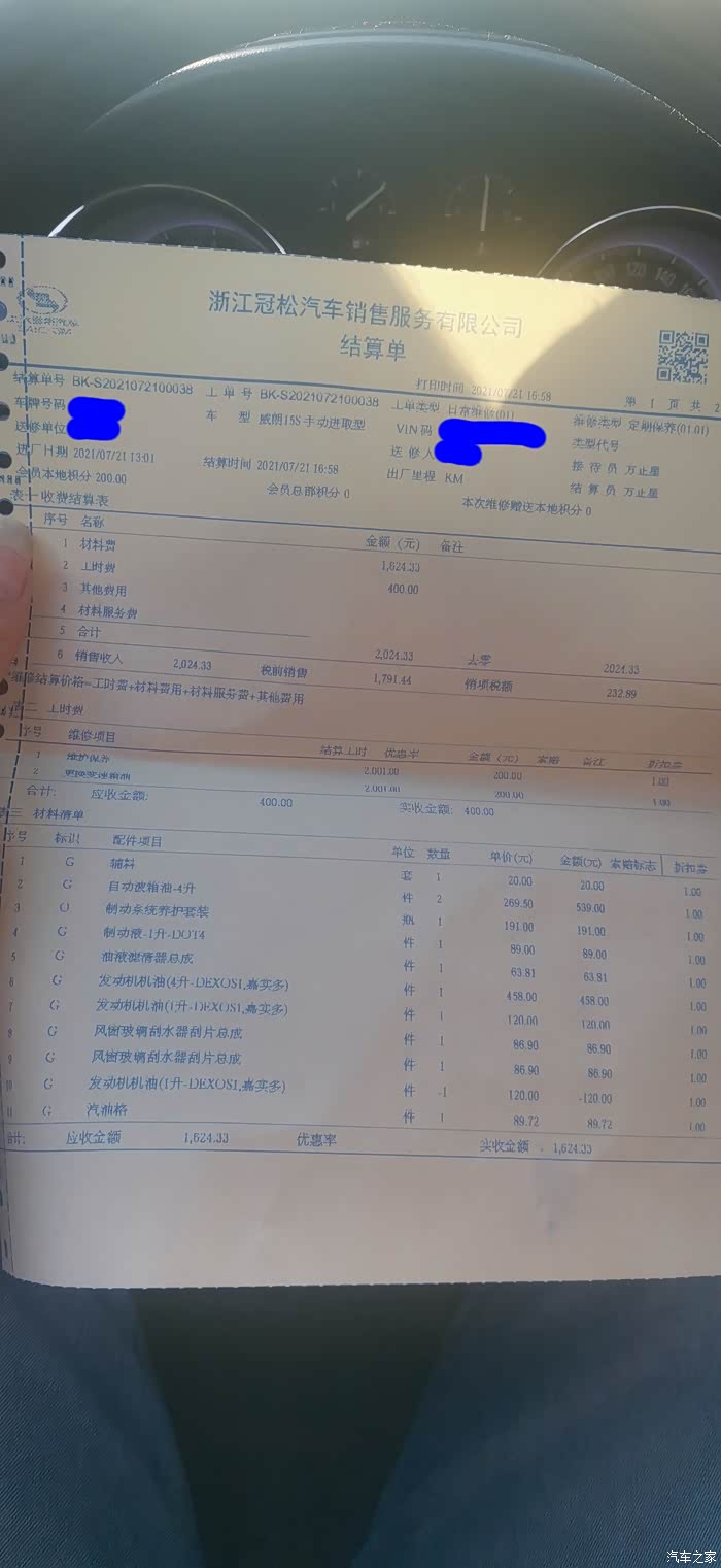 此次大保养就这样结束了,总共花费2000多块。