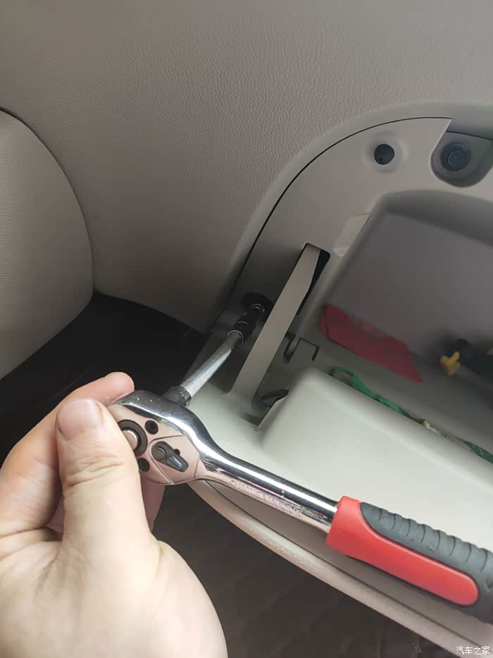 在使用加长型扳手把旁边的几颗螺丝也拧下来!