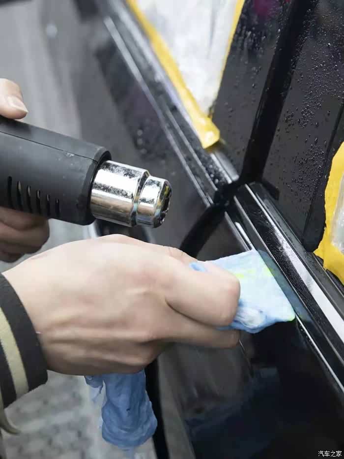 车到最里边的车间,准备贴膜。