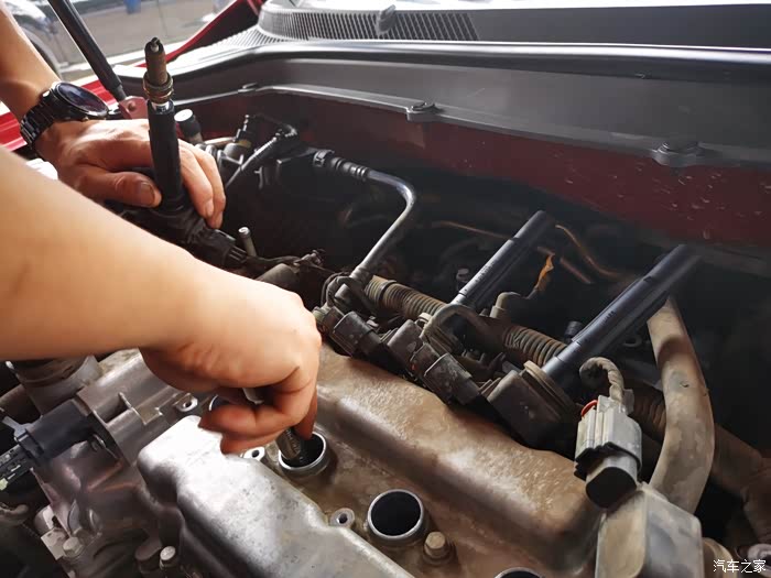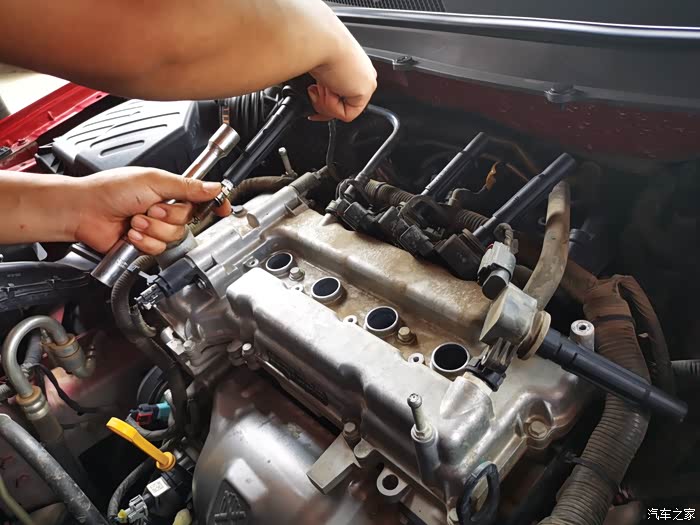 好了,从第一个火花塞开始卸。
