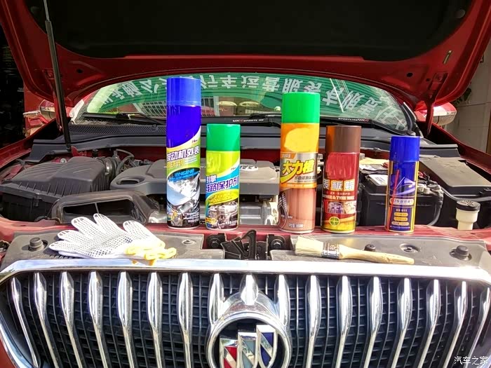 发动机外部清洗剂、引擎线束保护剂、车窗润滑剂,泡沫清洗剂、表板蜡,各种材料准备就绪,开始折腾……