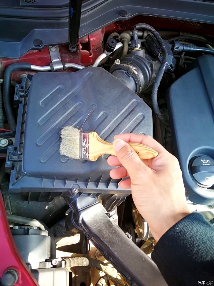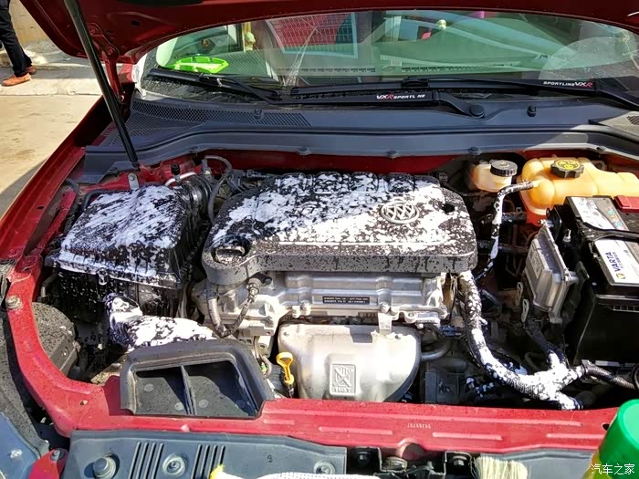 越干净越好,然后开始喷洒发动机外表清洗剂。