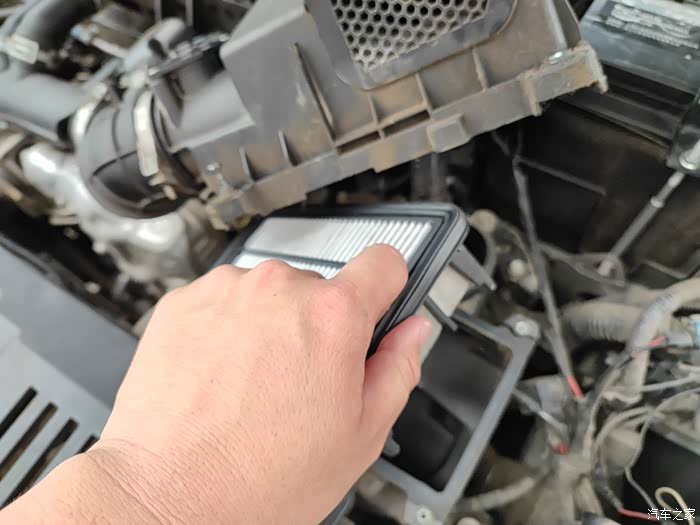 五、在安装新空气滤清器之前,需要对空滤盒底部进行彻底的清理,把空滤下面的尘土清除干净。