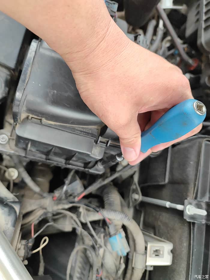 三、一般装有空气滤清器的塑料盒子上面有螺丝固定的,我们URV车型利用螺丝固定空滤,这时需要选取合适的螺丝刀将空气滤清器盒上的螺丝拧下。然后就可以看到里面空气滤清器,用手取出空气滤清器
