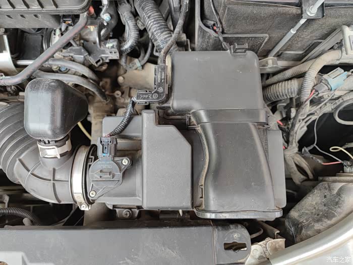 二、确定空气滤清器位置。空滤一般位于发动机舱中,一边与进气口管子相连,一头与发动机连接,可以看到一个四方的塑料黑盒子,空气滤清器滤芯就安装在里面。