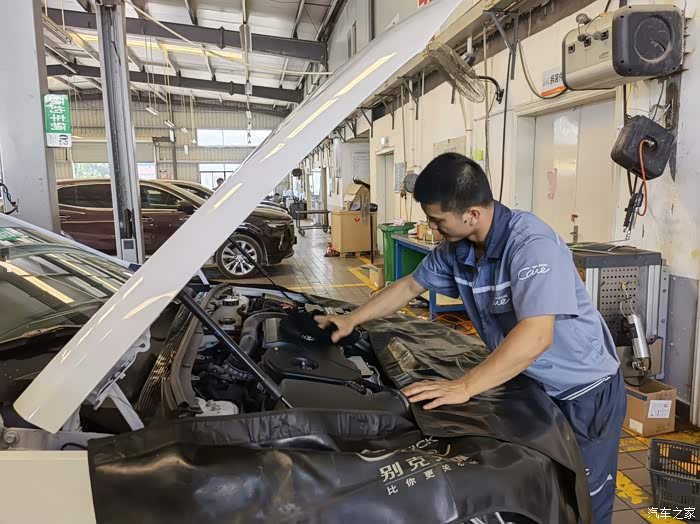 5月2日做的首保,整个保养时间是花了40分钟。这个时间想必大多数人还能接受,太短总觉得是不是检查不到位,时间太长大家也没这个耐心和时间,毕竟最煎熬的就是最漫长的等待……做首保前我提前打了当地4S店询问是否须要带保养手册,顾问说不用,只要下载个EbuickAPP软件线上预约即可,唉,不得不惊叹现在的科技信息时代太先进了,让车主们可以省下很多事情。