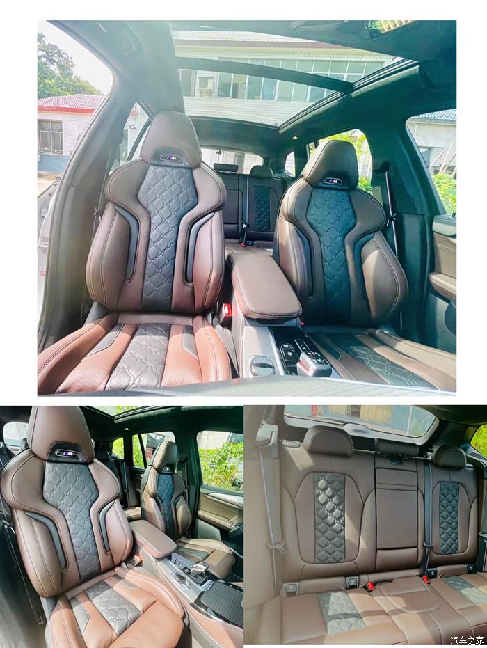 座椅合集2:整体饱满,前后搭配风格统一,且座椅更加宽大,腿拖更加长,舒适型提升明显,后排也较原厂提升明显,配3色M安全带和M灯牌,细节满满