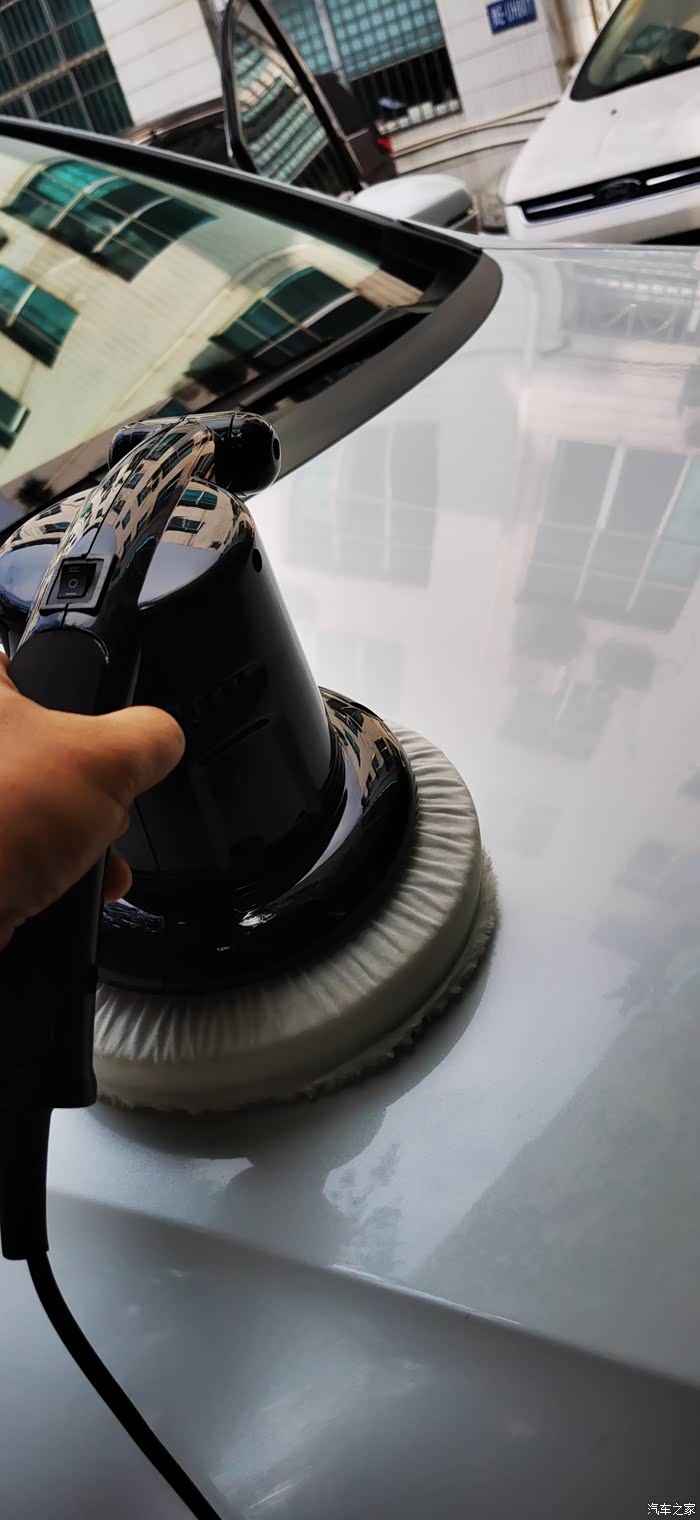 距上次手工打蜡半个月,本来可两月打一次蜡的。买了打蜡机,忍不住想试试机器打蜡的效果:时间比手工打蜡至少省0.5个小时,关键是抛光比手工省力省时(上蜡用手工)。