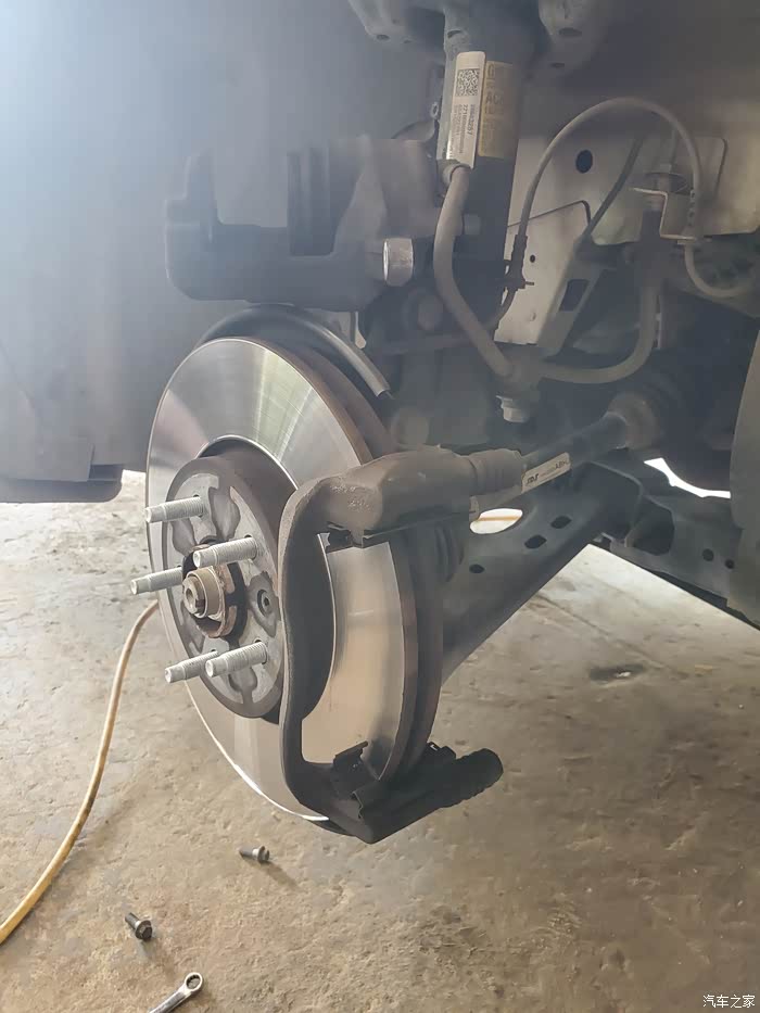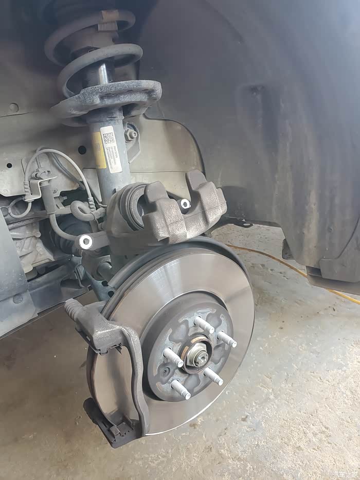 目前行使42000公里。前两天一直听到左侧驾驶外面有吱吱的声音,感觉是哪里有摩擦的声音。中午空闲时间到路边修车店查看,声音为制动刹车的制动衬片更换提醒。